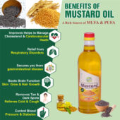 Organic Virgin Edible MUSTARD OIL:- Mansa organic inc. India is aimed towards providing you with healthy and nutritious oils. Cold Press. This means that the oil has been extracted by a (kohlu) wooden press method which doesn’t damage essential nutrients and fatty acids. Agronix virgin cold press Pure Mustard Oil, Oil is extracted from mustard by traditional method kohlu. This technique is the better process in word for oil extraction of edible oil seeds and nuts. comes with a full pungency level and full aroma. Being pure, our cooking oil retains its natural properties and mustard oil benefits. This is rich source of MUFA and PUFA. , We maintain an all-natural production process and don’t standardize our oils using artificial colours or essences or any chemicals.