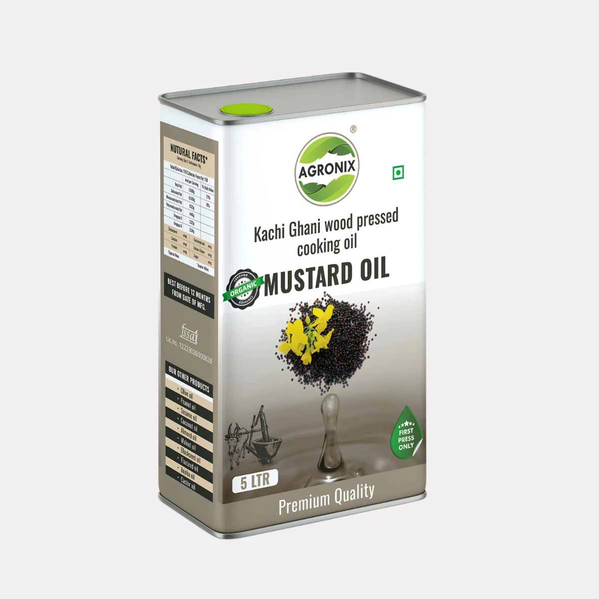 Organic Virgin Edible MUSTARD OIL:- Mansa organic inc. India is aimed towards providing you with healthy and nutritious oils. Cold Press. This means that the oil has been extracted by a (kohlu) wooden press method which doesn’t damage essential nutrients and fatty acids. Agronix virgin cold press Pure Mustard Oil, Oil is extracted from mustard by traditional method kohlu. This technique is the better process in word for oil extraction of edible oil seeds and nuts. comes with a full pungency level and full aroma. Being pure, our cooking oil retains its natural properties and mustard oil benefits. This is rich source of MUFA and PUFA. , We maintain an all-natural production process and don’t standardize our oils using artificial colours or essences or any chemicals.